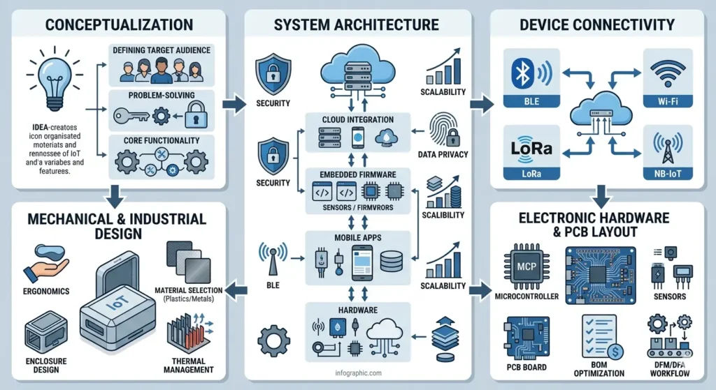 Poor system architecture often results in devices that are unreliable or unable to scale. Collaboration between hardware, firmware, and cloud teams at this stage is essential to avoid bottlenecks.