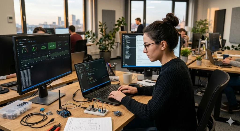 Firmware development is the heart of IoT functionality. It manages sensors, actuators, communication protocols, and power efficiency.